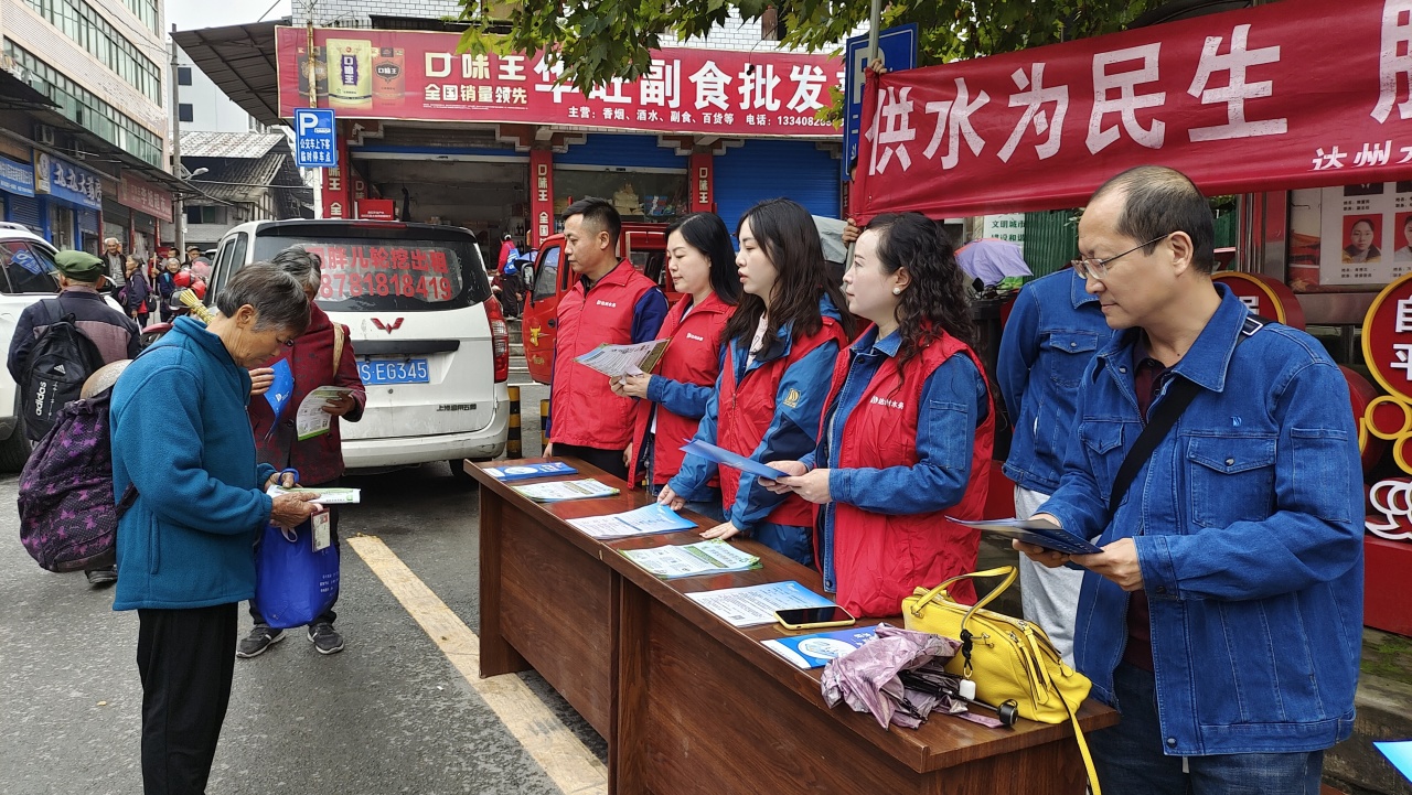 活动现场,志愿者们沿街发放供水宣传单,向用户讲解用水知识。