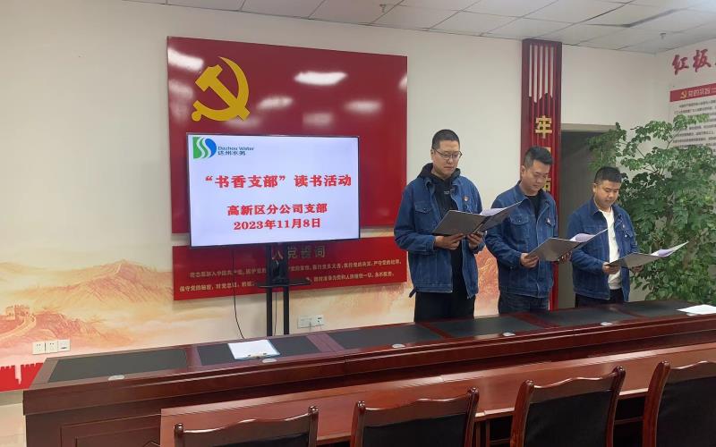 为深入开展学习贯彻习近平新时代中国特色社会主义思想主题教育,2023年11月8日上午,达州水务集团高新区分公司支部在党员活动日当天开展了第11期“书香支部”特色读书活动,支部党员分组对《习近平著作》等书籍进行了诵读,通过诵读进一步促进了全体党员学原文、悟原理、知原义的学习热潮。